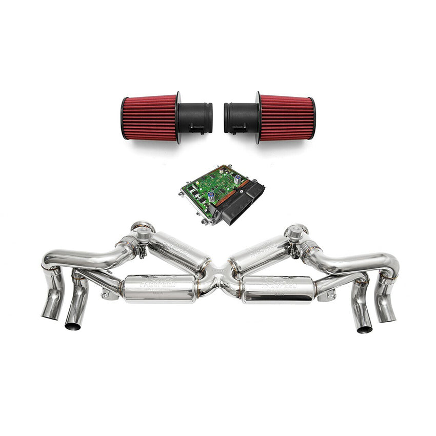 Fabspeed Valvetronic Performance Package for Lamborghini Huracan 2014-2019Vendor: FabspeedFor any questions please PM or email: Online@AutoTalent.com Descriptions: Unlock the full potential of your Lamborghini Huracan's 5.2L V10 with increased air flow, power, and reduced weight from Fabspeed's Valvetronic Supersport X-Pipe Exhaust System, BMC F1 Performance Air Filters, and Fabspeed ECU Tune (via Handheld...