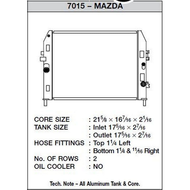 CSF Performance Radiator For Mazda Miata 2006-2012Vendor: CSFDescription: CSF Radiator Increase the life of your vehicle's engine by keeping your cooling system in top condition. Replace your faulty engine cooling component with this highly efficient replacement product and be sure the heart of your vehicle is in good working order. CSF...
