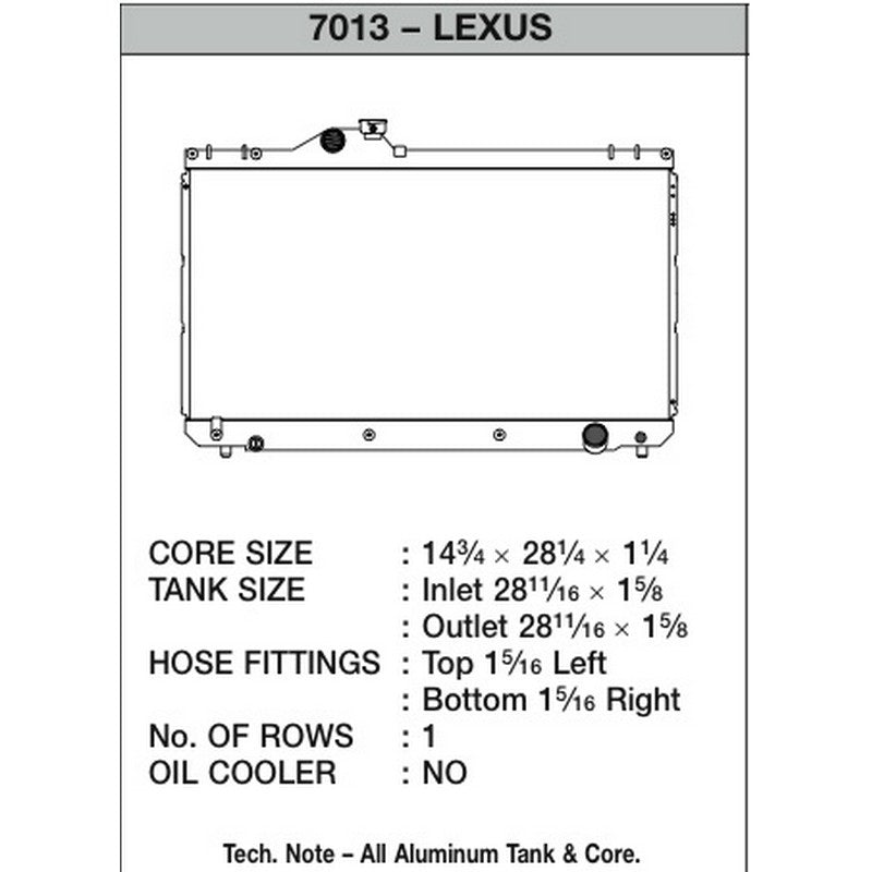 CSF Performance Radiator For Lexus IS300 2001-2005Vendor: CSFDescription: The Racing & High Performance Division of CSF Inc. strives to build and engineer the most advanced, efficient and reliable cooling systems in the world. CSF manufacturers a wide variety of sophisticated cooling systems with more than 117 different applications ranging from high...