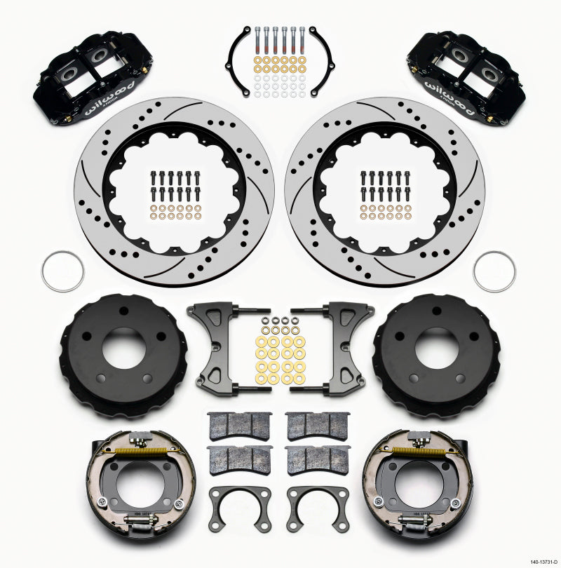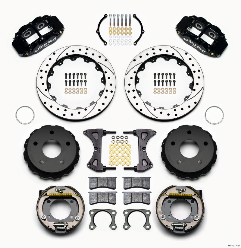 Wilwood Forged Dynalite P/S Park Brake Kit Drilled Ford 8.8 Special w/2.50in Offset-5 LugVendor: WilwoodThis group of FDL Pro-Series rear disc kits provides a complete solution for popular muscle car rear axles that require a parking brake. Forged billet Dynalite four piston calipers, 12.19” one-piece drum/rotors, and high friction pads provide optimized and balanced braking for all types...