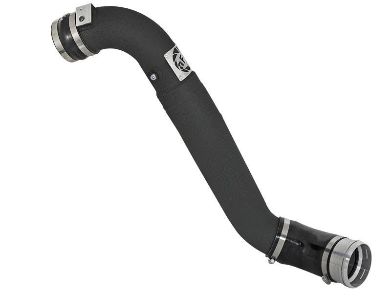Flow and Performance: aFe Power's cold side tube is constructed from 3-1/2" and 3" mandrel-bent aluminum tubing for maximum flow then, powder-coated for a nice finish. The high-temp powder-coating also insulates the tube from engine heat and protects the tube from corrosion. The smooth transition bends decrease turbulence, minimize pressure loss, while increasing horsepower and torque. This tube is also equipped with a billet aluminum factory style quick connect adapter that seals with an o-ring. One 1/8" NPT port which is provided on the tube for a sensor or water-methanol injection. Perfect Fit: Utilizes the factory mounting locations to provide stability for a hassle-free installation. Includes high quality stainless steel clamps and heavy-duty 5-Ply couplings for strength. Fits OEM or aFe's upgraded intercooler. (46-20291). aFe Badging: Unique aluminum laser-cut aFe Power logo plate is welded-on for an aggressive style.