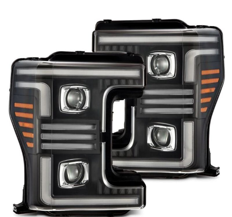 AlphaRex 17-19 Ford F-250/350/450/550 Super Duty PRO-Series Proj Headlights Black w/SeqSig & DRL