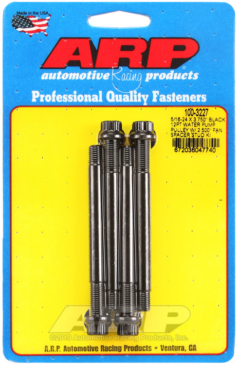 ARP 5/16-24 X 3.750 black 12pt water pump pulley w/ 2.500in fan spacer stud kit