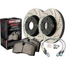 Significant brake performance improvements using the factory calipers and pre-matched, direct-replacement (OEM) sized components. This StopTech Sport Axle Pack includes cross-drilled StopTech Sport Rotors, StopTech Sport Pads and StopTech Stainless Steel Lines.