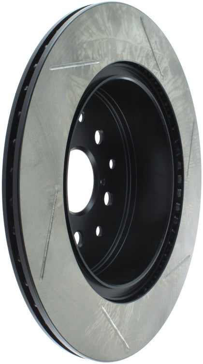 StopTech Slotted Sport Rotors are 1-piece direct replacement brake discs for factory brake systems and stock calipers that look great behind your wheels – and offer significantly improved braking performance. The unique slotting aids with heat and brake dust dispersal; prevents glazing of the pads; adds bite and improves wet and dry braking performance. Built to last; the black e-coating provides protection from corrosion and the high carbon metallurgy (in most applications) offers quieter operation; better crack resistance and increased performance.