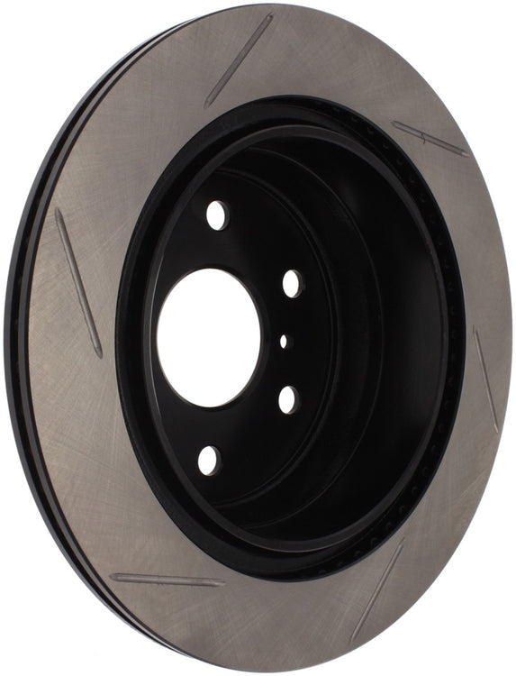 StopTech Slotted Sport Rotors are 1-piece direct replacement brake discs for factory brake systems and stock calipers that look great behind your wheels – and offer significantly improved braking performance. The unique slotting aids with heat and brake dust dispersal; prevents glazing of the pads; adds bite and improves wet and dry braking performance. Built to last; the black e-coating provides protection from corrosion and the high carbon metallurgy (in most applications) offers quieter operation; better crack resistance and increased performance.