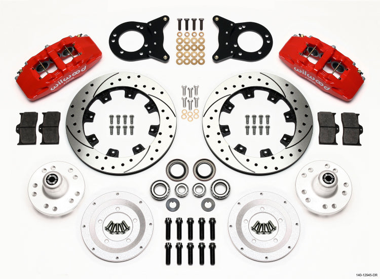 Wilwood Dynapro 6 Front Hub Kit 12.19in Drill Red 1970-1973 Mustang Disc & Drum Spindle