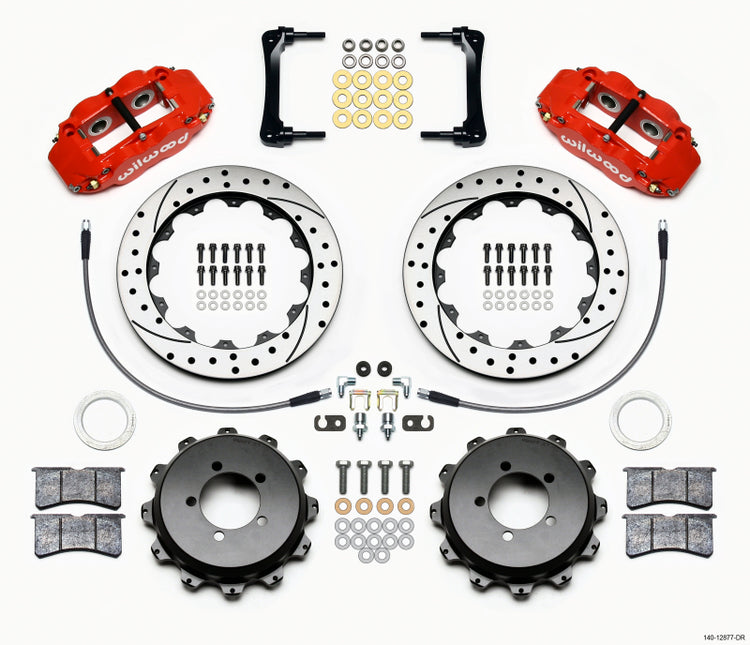 Wilwood Narrow Superlite 4R Rear Kit 12.88in Drilled Red 2008-2012 Subaru WRX w/Lines