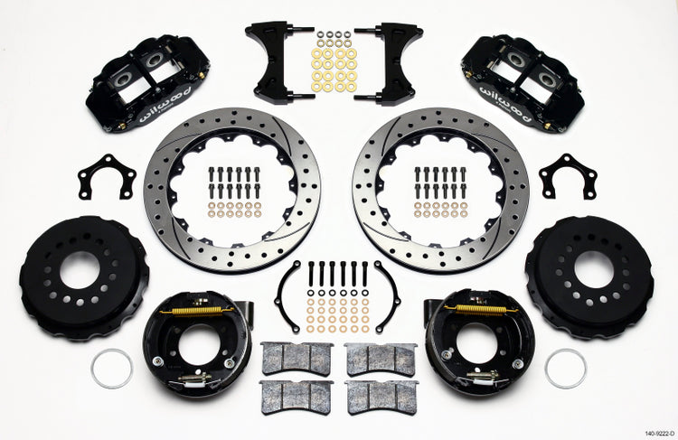 Wilwood Narrow Superlite 4R Rear P-Brk Kit 12.88in Drilled Mopar/Dana 2.36in Off w/Snap Ring Bearing